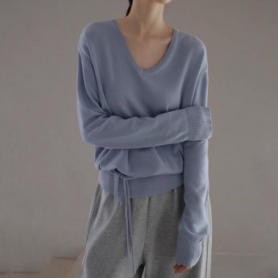 on.[NT665]브이넥허리끈니트